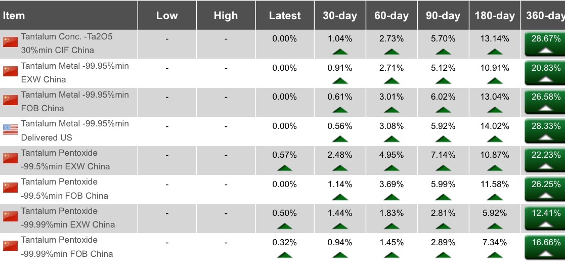 Spotmarkt Tantal Pentoxid steigt