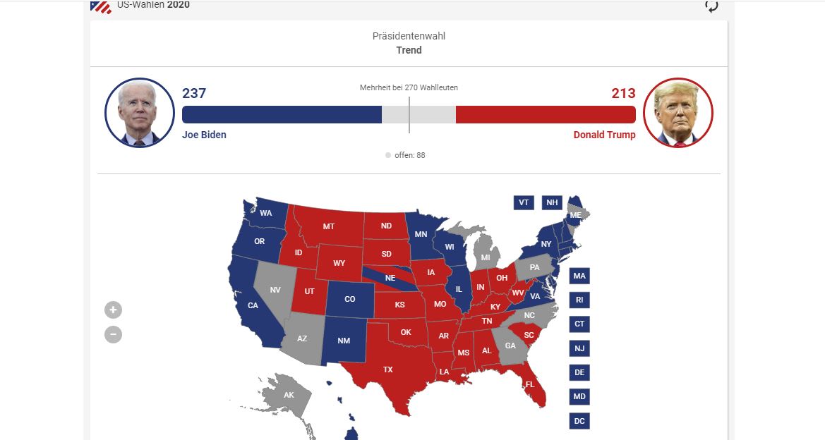 So: Biden kommt z.Zt. auf 264 Wahlmänner, da er