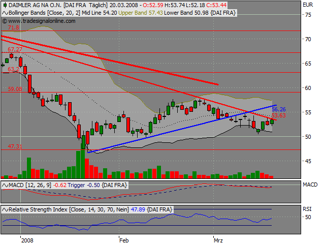 Kein Handlungsbedarf aus bullisher Sicht. Der kurzfristige Uptrend (blau) wurde gebrochen. Die 47,31 könnten durchaus noch mal gesehen werden.