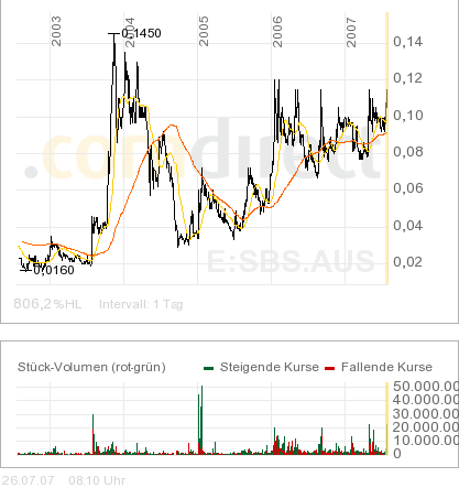 trotz wieder toller Bohrergebnisse und somit weiteren Substanzgewinnes, sind die mickrigen 5% Plus vom Montag schon wieder weg und der alte Kampf mit der lächerlichen 0,08er AUD Marke ist wieder Tagesgeschäft. Ich kenne keinen anderen Wert, der trotz ständiger und regelmässiger guter Entwicklung so auf der Stelle tritt.