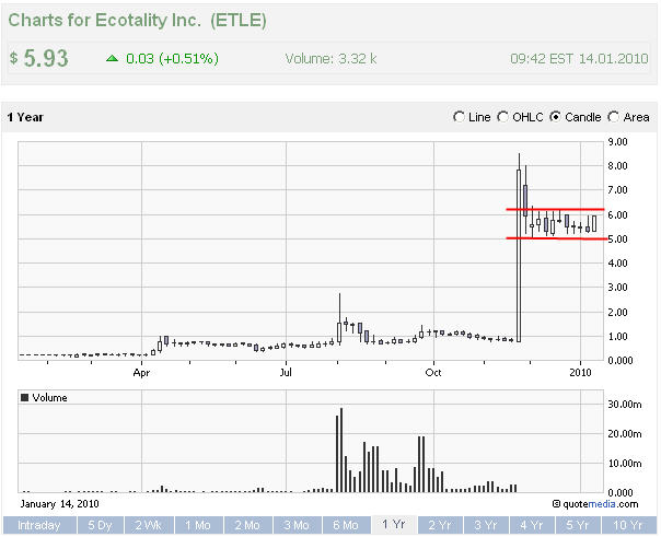 Ecotality konsolidiert zwischen 5$ und 6 $