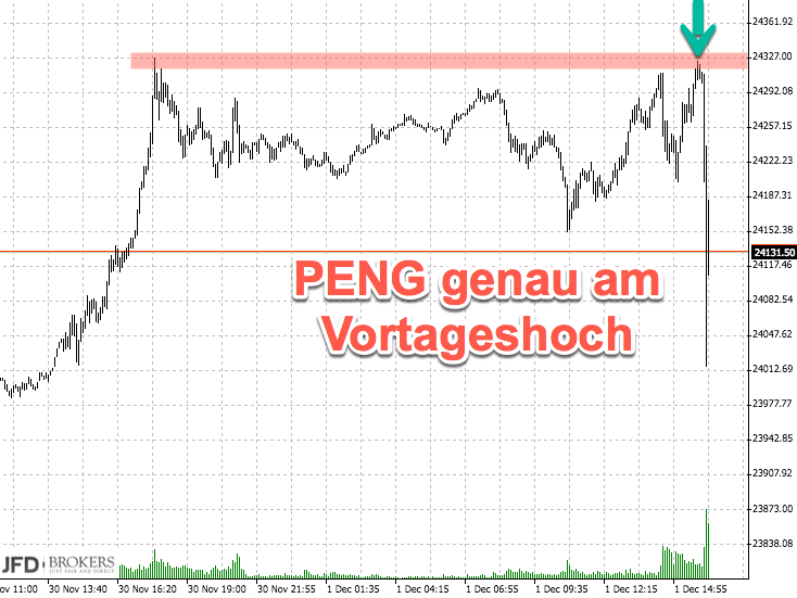 Unterseite das GAP gestern um 24.040 könnte ein wenig Halt geben bzw. gab erst einmal, doch bei der Dynamik ist auch ein sehr roter Freitag denkbar.
