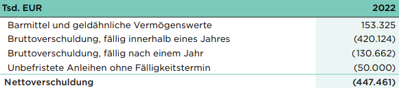 die nettofinanzverschuldung (2022: s. tabelle unten) reduziert sich entsprechend