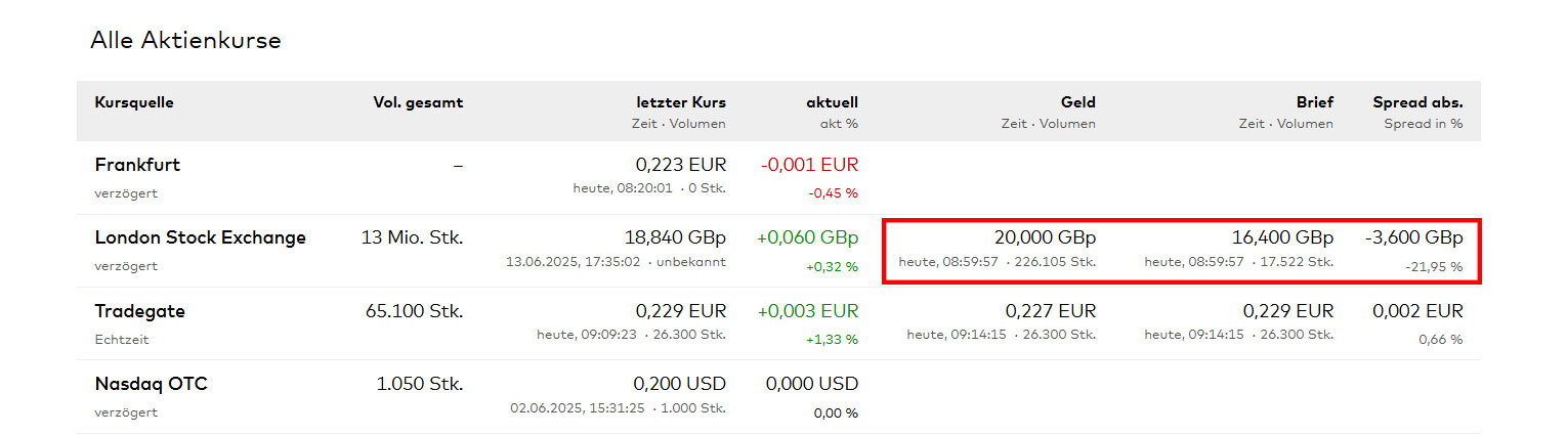 Darf ich mal was fragen - es betrifft nicht die Commerzbank-Aktie, ist also offtopic... aber da hier einige sehr erfahrene Investoren dabei sind, wollte ich fragen, wie das möglich sein kann, dass der Geldkurs (zu dem verkauft wird) höher ist als wie der Briefkurs (zu dem gekauft wird)...