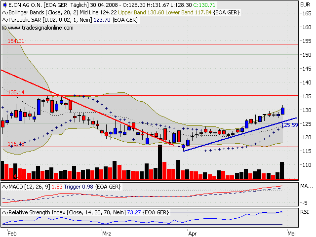 Bei Erreichen der 135,- sollte man über eine Absicherun­g nach unten nachdenken­.