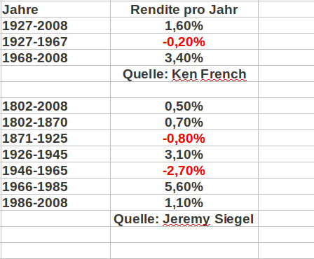 Interessante Statistik aus der Datenbank von Ken French / Jeremy SIegel. Einerseits hat sich Gold als Inflationsschutz ultralangfristig bewährt. Andererseits hatte man in den ersten 163 Jahren gerade mal eine Inflationsbereinigte Rendite von 10%. Nach Inflation gab es also für Gold von 1802 bis 1965 nur 0,0006% Wertzuwachs pro Jahr. Umso schlechter wenn man bedenkt, dass Aktien im selben Zeitraum konstant über 6% pro Jahr nach Inflation boten.