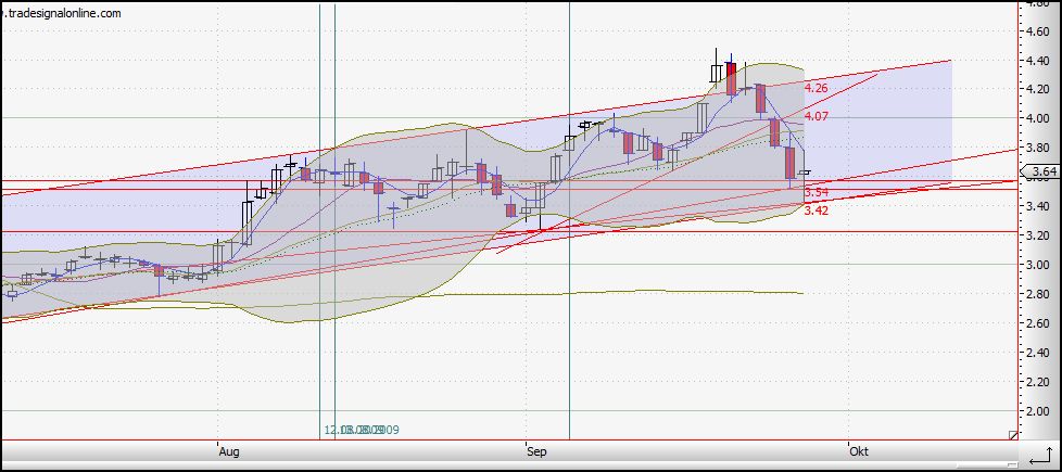 Der "schlimmste" Rückfall im Trend war bisher der Verlust von 3,90 auf 3,30 und das haben wir zur Zeit LOCKER übertroffen. Ich sagte bereits, für mich sind ein paar tausend Euro verschenktes Geld keine peanuts wie für manch anderen und irgendwann sollte mit dem Verschenken schluß sein :), einsteigen kann ich ja wieder.