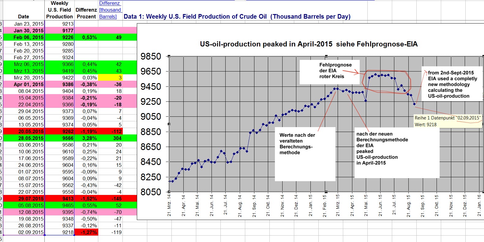 Wie das DoE am Mittwochnachmittag mitteilte, sind die US-Rohöllagerbestände in der Woche bis zum 11. September 2015 entgegen den Erwartungen um 2,1 Millionen Barrel gesunken. In Cushing, der größten US-Lagerstätte, gingen die Vorräte um 1,9 Millionen Barrel zurück - der stärkste Rückgang seit Februar 2014. Zudem sank auch die US-Ölproduktion, was die Hoffnung am Markt auf einen Abbau der weltweiten Überkapazitäten schürte. Die US-Ölproduktion liegt nun bei 9,12 Millionen Barrel täglich - der niedrigste Stand seit Dezember.