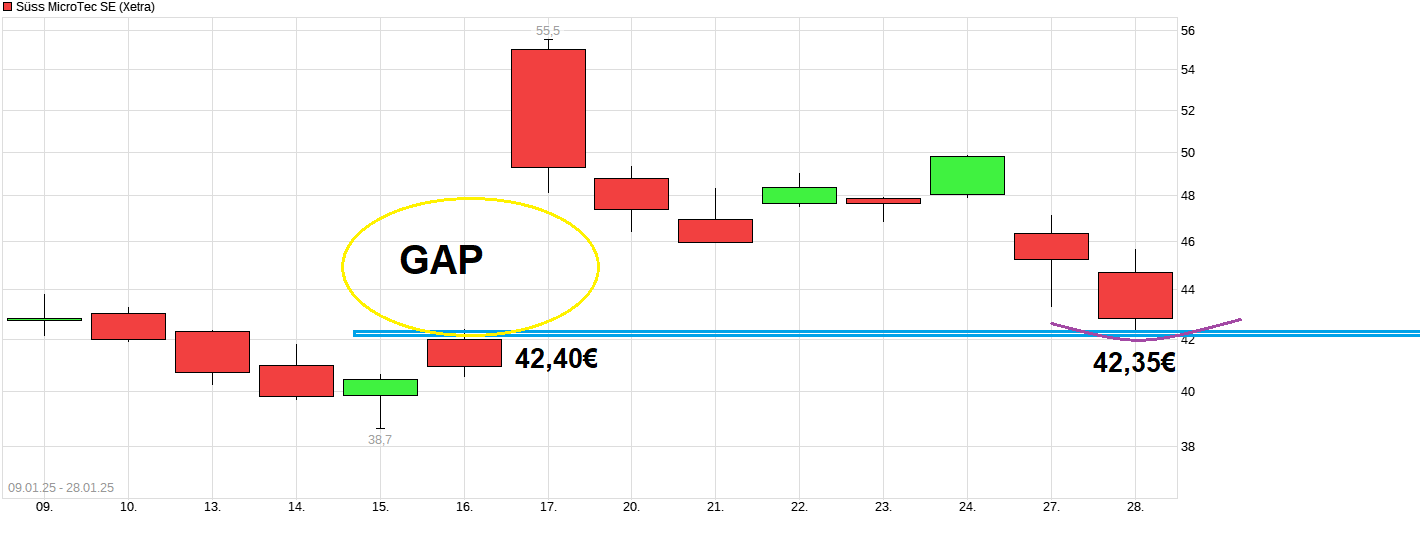 Gap bei 42,4€ wieder geschlossen