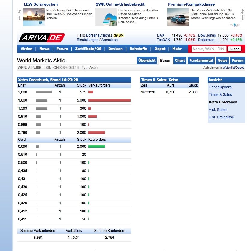 Du meinst, dieser Thread hier auf Ariva hat direkten Einfluss auf das Kaufverhalten bei der World Markets AG?