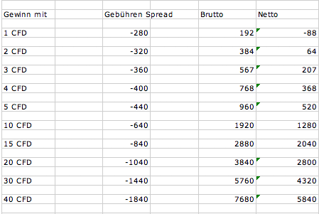 Je kleiner das Tradingkonto desto schneller brechen dir die Gebühren das Genick. Wie man sieht bekommt man bei dieser Performence erst ab 5 CFD´s mehr vom Kuchen als der Broker.