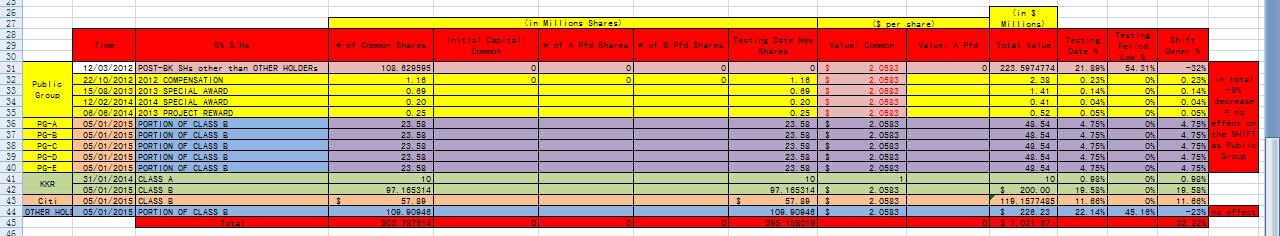 Before Class A and Class B, Other Holders were having around 45% interest of the CO. After Class B, they would push 22.14% towards the SHIFT. However, because the lowest % in the testing period was 22.14%, their contributing portion, again, gets netted zero. -------------------------------------------------- THEREFORE, THE FINAL SHIFT ON OWNERSHIP TOTAL, IN ACCORDANCE TO MY FINGERS, IS 32.22%. EVEN WITH FURTHER INCLUSION OF KKR WARRANTS, THE % RISES TO 39.68%. THEY ARE MANAGED. __________________________________________________ Zitatende MfG.L:)