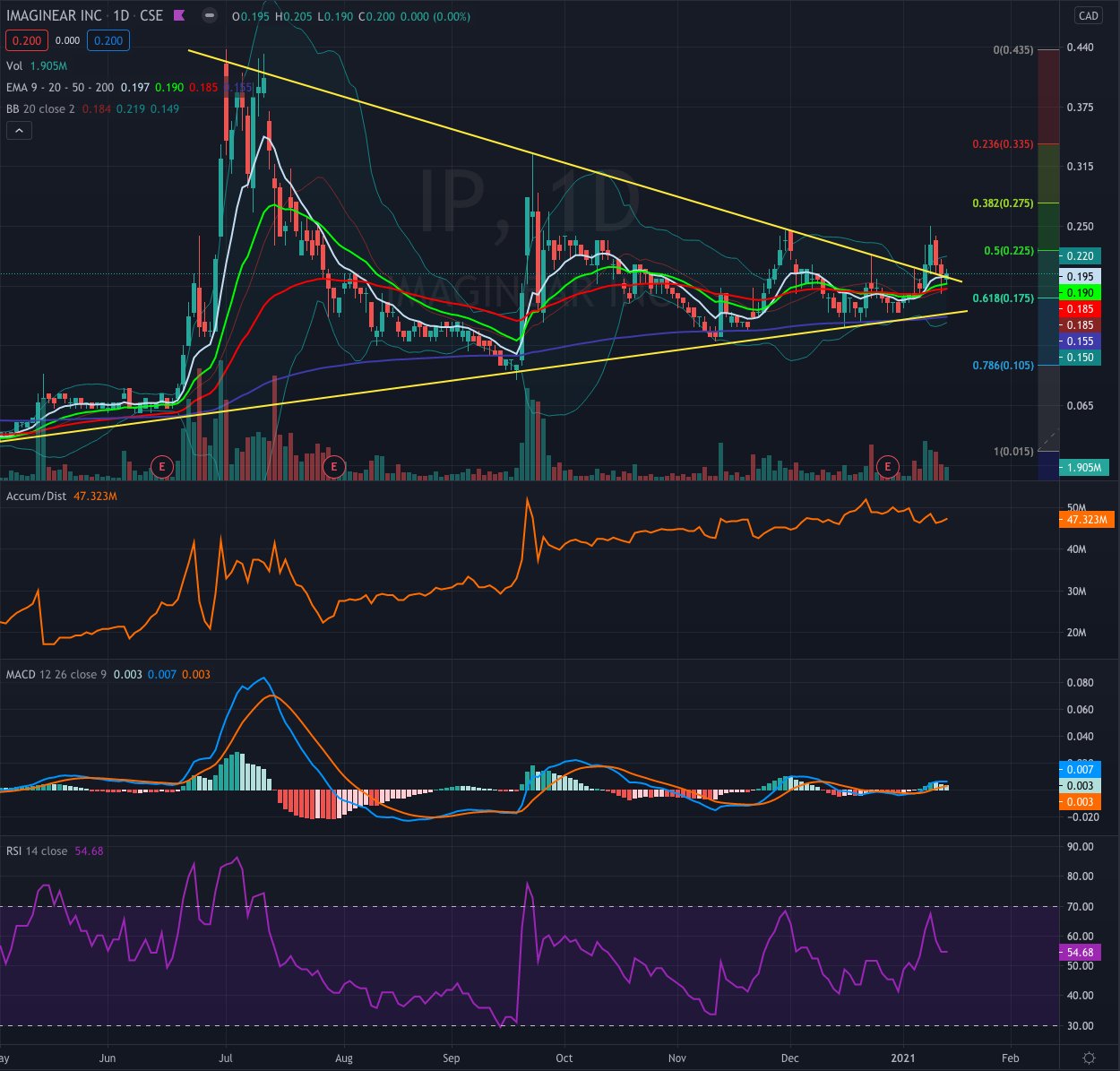 Aus charttechn­ischer Sicht ist die Lage weiterhin grün. IP hat im unteren Bereich des Trendkanal­s nun nochmals erfolgreic­h den Support getestet und baut sich gerade ein schönes Treppchen nach oben auf. Abgesehen von den Good News stellen die Insiderkäu­fe der letzten Tage durch den Chairman - teilweise zu Kursen um die 0,27 CAD auf dem reguären Markt - für mich ein weiteres positives Vorzeichen­ dar.