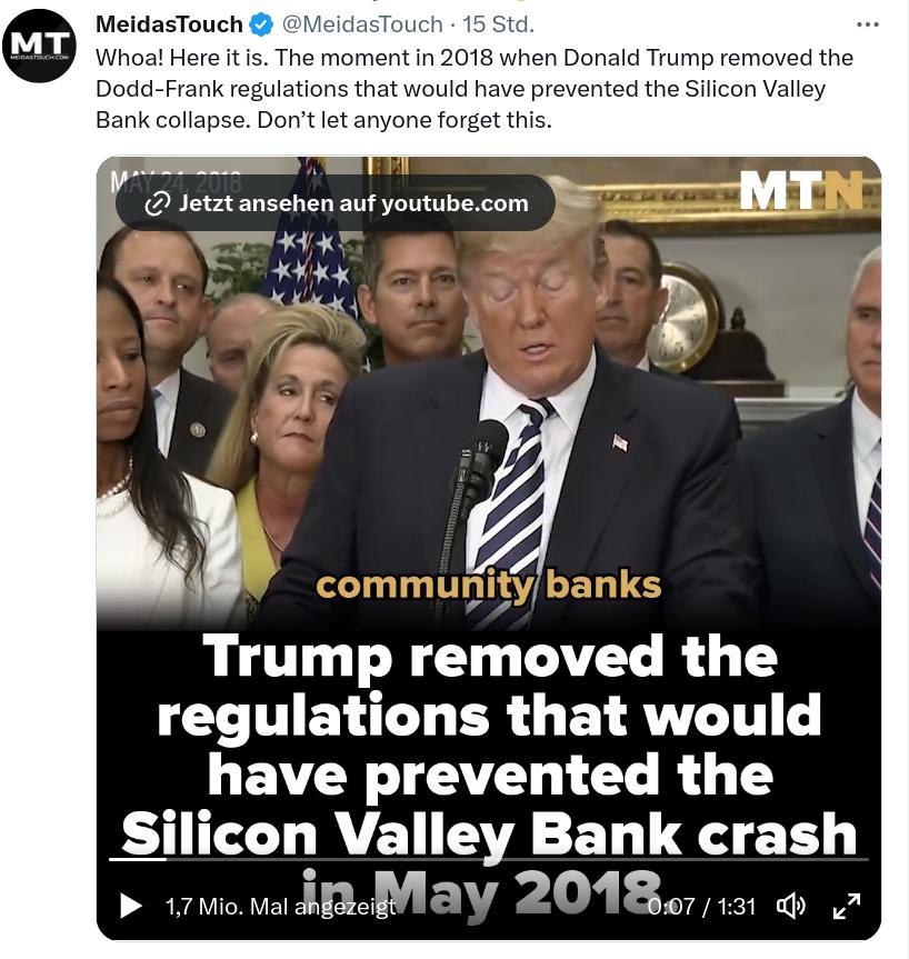 der Twitter-Meldung weiter oben im Threads stimmt, spätestens morgen vor Börseneröffnung in den USA eine Meldung veröffentlichen, dass alle Einlagen bei weiteren Banken abgesichert werden.