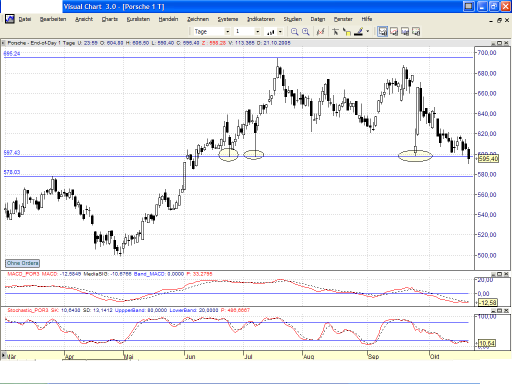 Eine Unterstütz­ung ist noch bei 578 ansonsten könnte es bis 500 runter gehen.