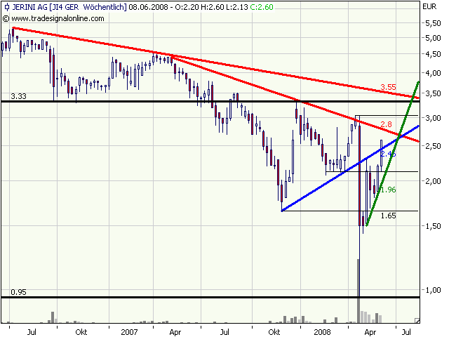 Jerini wird kurzfristig nicht weiter steigen. Jerini (News/Aktienkurs) wird am Dienstag den 10. Juni bei 2,44 Euro notieren.