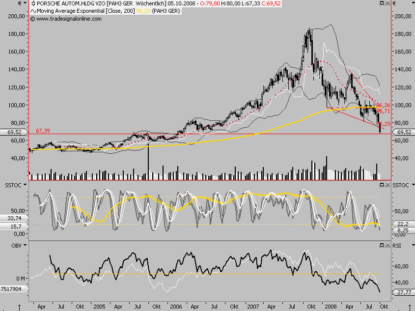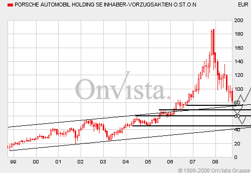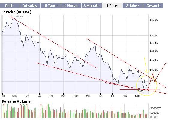 Wen interessiert denn in der heutigen Börsenlage die Chartsitua­tion. Wenn die Rezession wirklich so dicke kommt, wie allgemein befürchtet­, dann gibt es die Porsche für 20 €. Nur abwarten ist angesagt.