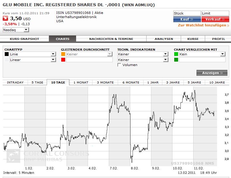 Die Aktie dürfte vor allen Dingen durch den Facebook-Deal so angetrieben werden. Facebook ist eine Geldmaschiene und jeder würde gerne einen Teil davon ab haben. Man hat ja schon daran gesehen wie Goldman Sachs Kunden sich um Facebook Anteile gerissen haben, dass da viele den Traum von großen Gewinnen träumen. Glu ist eine Möglichkeit irgendwie, irgendwo bei Facebook einzusteigen und alle spekulieren auf einen Durchbruch. Bleibt nur zu hoffen, dass sich das Ganze nicht als eine Blase entpuppt.