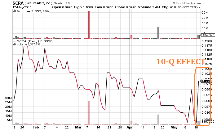 Shares of SecureAlert Inc. (OTC: SCRA) surged in today’s trading after the company announced its financial results for the three months ended March 31, showing a 29% jump in revenue. SCRA is an International provider of patented, wireless electronic monitoring systems and services to public safety agencies. The quarterly report sent shares in SCRA up 19.14% to $0.0965 by midday today. (OTC:SCRA), (SCRA)