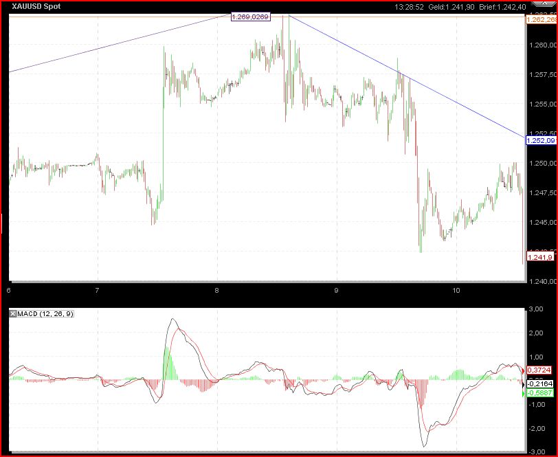 seit 2 min. short in gold. hoffe, dass wir auf 1254 heute noch zurückfallen. meiner meinung nach: gute chance. hab ja hier gelesen, dass auch manche immer die peaks versuchen zu shorten.