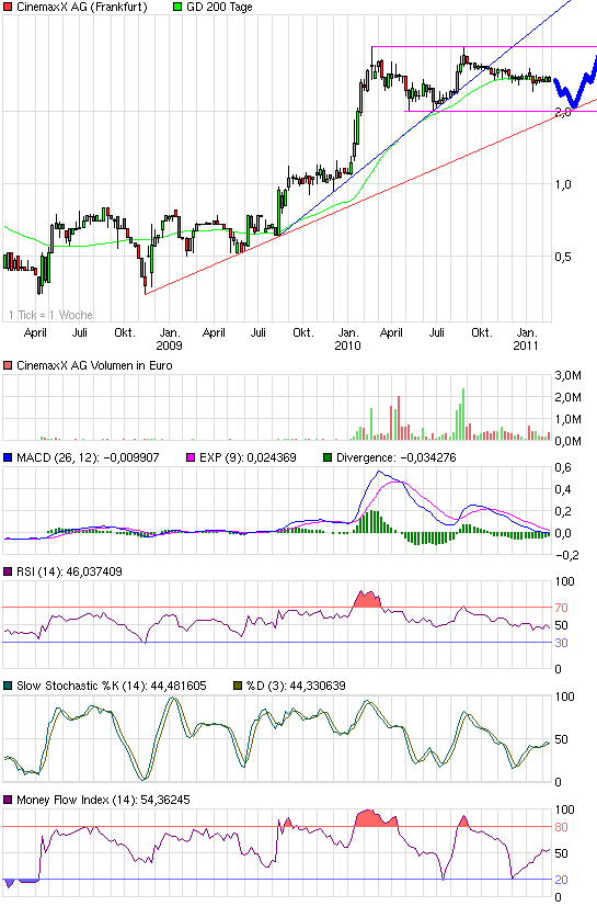 ..danke für Deine Einschätzung. 2010 ist Geschichte- mit einem EPS 0,40-0,45 je AKtie wäre ich sehr zufrieden. Für 2011 hoffe ich einfach auch auf eine nochmalige Steigerung und sehe mich hinsichtlich der Aussagen/Einschätzung des Marktes bzgl 2011 hierin zusätzlich gestärkt. Werde die Aktie auch noch länger begleiten bzw. auch bei sich abzeichnenden steigenden Kursen ,,verscherbeln"! Persönlich glaube/hoffe ich immer noch auf ein Überraschungspotential bei der Veröffentlichung der vorläufigen Zahlen (weder bei den reinen Zahlen, als viel mehr von positiven Stimmen seitens der ,,Börsenblätter"). Richtig interessant wird es sowieso erst, wenn der Kurs mal Richtung Zwischenstop 3,70 EUR geht! Die Filmpipeline für 2012 ,,liest" sich ja auch schon einmal nicht schlecht! CRP der Aktie ist vor dem jetzigem status quo und den Aussichten für dieses Jahr m.E ,,sensationell" gut. 3D-Anteil ist ja auch weiter stabil bzw. hat sich verbessert! Mal sehen, wann wir die Ernte einfahren (zumindest die ,,Buchgewinne")!!?