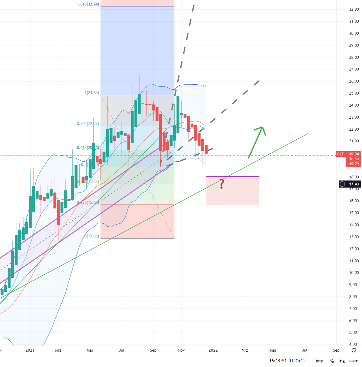 Koks und Öl gehen weiter hoch, und solange die Börsenkommentatoren sich nicht den earningscall in Gänze durchlesen, werden sie immer noch von einem integrierten aber Erz explorieren und schmelzenden Unternehmen reden. Die Produktionsänderung haben nur die wenigsten nachvollzogen. Es kann daher noch etwas dauern, bis sich CLF aus dieser falschen Betrachtung befreien kann.