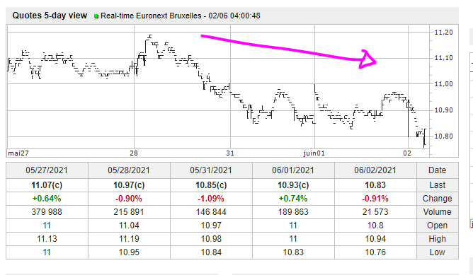 Vielleicht mit dem SP500 bei 5000 Pts UND der Bel20 bei 5500 Pts.... können wir 11,50 Eur hier wieder sehen.