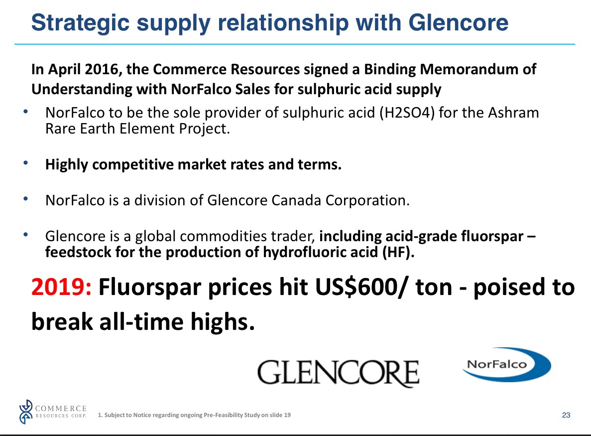 Commerce has a strategic supply relationship with Glencore on Fluorspar
