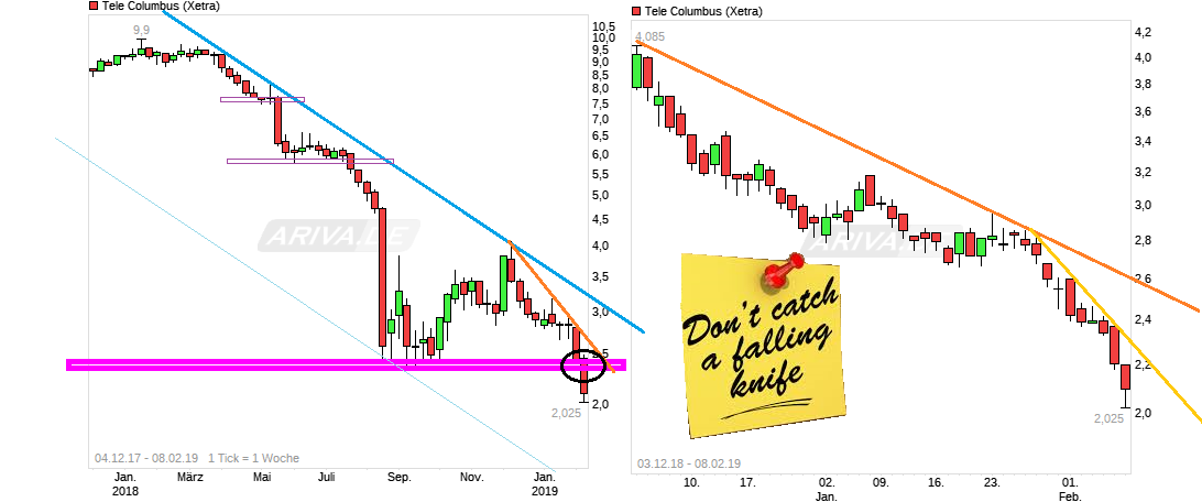 Wenn es so wäre, dann wäre es zumindest etwas beruhigender, da man dann mit Sicherheit wüßte, daß nur miese LV-Spiele und der dazugehörigen Fakenews-Postille "Financial Crimes" dahinterstecken. Wenn es hingegen so nachrichtenlos und so lange passiert wie jetzt wieder bei TC, dann ist halt das ungute Gefühl da, daß es hinter den Kulissen wieder weitere ungute fundamentale Entwicklungen, Wertberichtigungen, etc. gibt anstatt nur die substanzlose Manipulationsaktion wie bei WC. Also mal abwarten was rauskommt. Hoffe nicht sowas wie bei Gerry Weber, wo dann plötzlich Insolvenz in Eigenverwaltung Thema wird und sich die Insider auch vorher schon abseilten. Der Break unter die 2,32 war erstmal ein erneuter technischer Schlag und es könnte aus dieser bisherigen Unterstützung nun eine künftige Widerstandsmarke werden. Aber bevor man von der Rückeroberung der 2,32+x spricht könnte angesichts der frischen Abwärtsdynamik eher das Thema der 1 vor dem Komma noch akuter werden. Entsprechend sehe ich hier bei der unklaren Nachrichtenlage warum der Kurs so fix abrauscht auch keine Eile zu kaufen solange das Messer fällt.