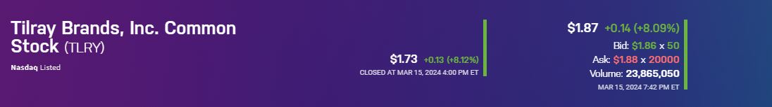TLRY trendet bei Yahoo Finance auf #1