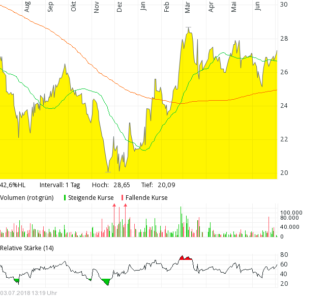 dass Zeal aus der langen Seitwärtsbewegung zwischen 26 und 28 nach unten leicht ausgebrochen ist. Also eher Charttechnik. Bei dem Volumen aber m.E. kein Grund zur Beunruhigung. Ich habe die Chance zum Nachkauf genutzt, weil ich nächste Woche mit guten Zahlen rechne. Lotto24 haben ihre Prognose, insbesondere wegen Eurojackpot, erhöht. Vielleicht hat das auch Auswirkungen bei Zeal.