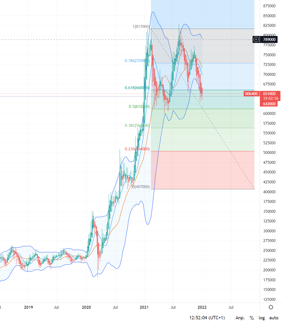 Im Regelfall läutet sowas die eigentliche Konsolidierung erst ein. Rein chartbasiert ergibt sich ein Abwärtspotential von 22 -23% .
