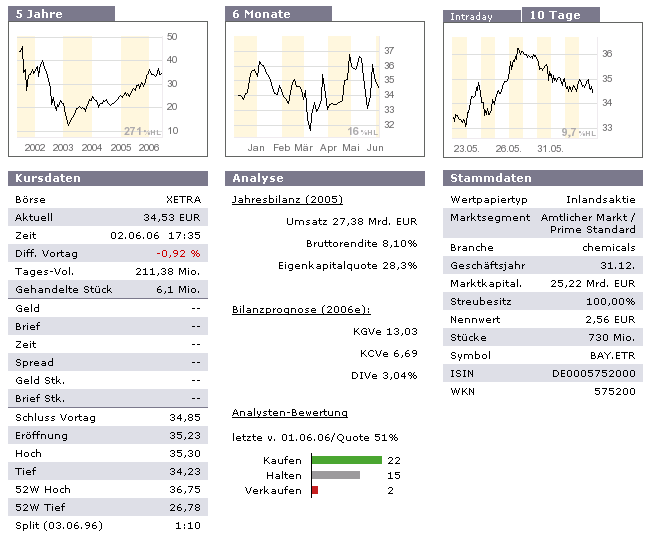 ich sehe, dass Du Dich mit Bayer gut auskennst. Ich bin seit 2002 bei Bayer investiert und habe alle Höhen und Tiefen miterlebt.