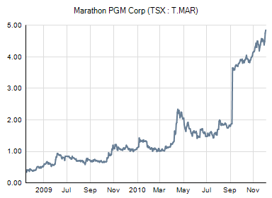 Herr Hahn war im Jahr 2003 ein Gründungsdirektor und Aktionär von Marathon PGM Corp. Seht euch den Chart unten an. Nun ist Greg Hahn bei Canamex an Bord und er würde nicht bei Canamex einsteigen, wenn hier nicht ein ähnliches Potenzial bestünde. Bei Canamex hat man nun die Möglichkeit von Anfang an dabei zu sein.