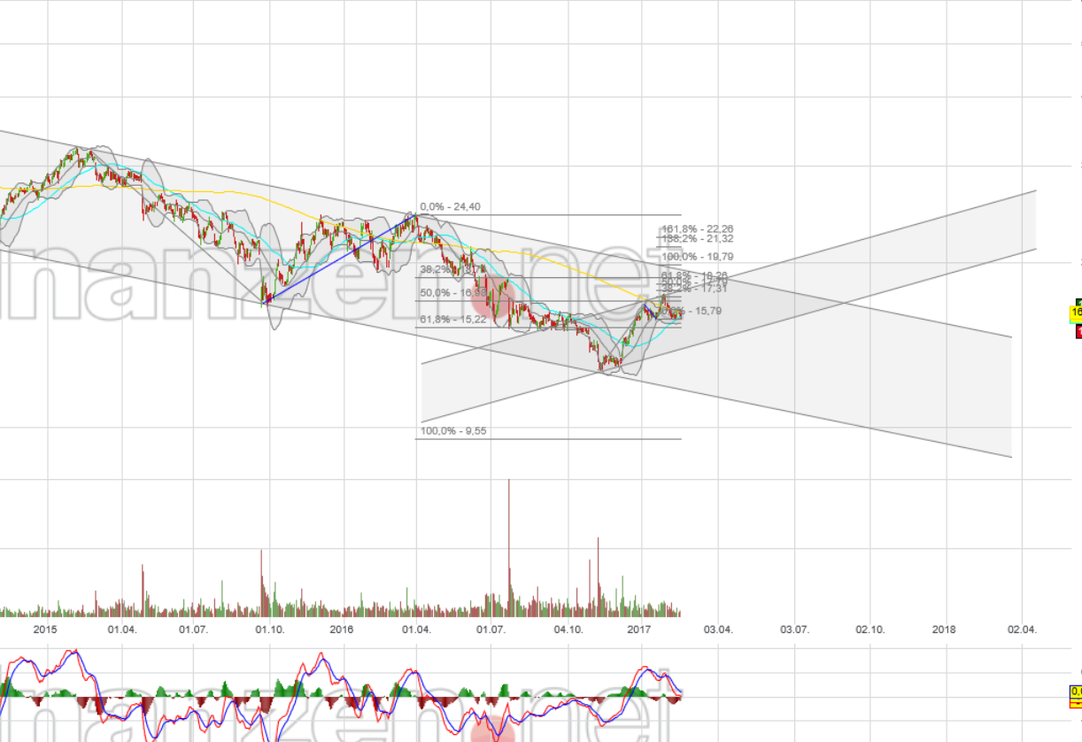 Zu deiner CT. Alles okay ... nur wird sich die 9€ wohl nur bei überaus schlechten Nachrichten und vermutlich auch schlechtem Markt zeigen, während ich 22 Euro zumindest mittelfristig auch entsprechende Fakten erwarte. Und diese Fakten welche die Kurs beeinflussen heißen sicherlich nicht "golden cross", sondern sind eher das aus dem Du im eigentlich Sinne investiert bist.