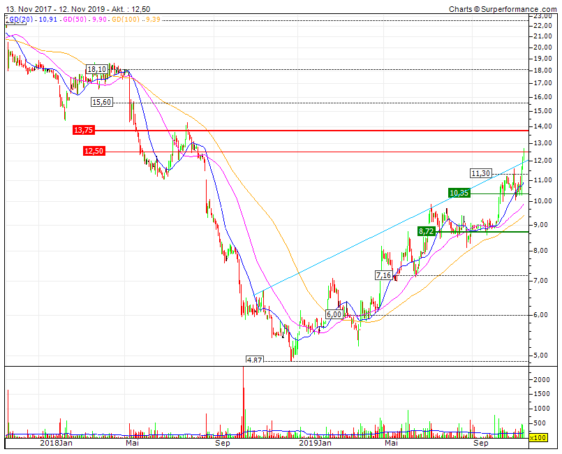 Sind die Zahlen und Ausblicke stark, sind die völlig fernen 16€ wirklich noch dieses Jahr drin, und ich hätte die 100%, aber ich könnte mich auch mit einem Rücksetzer auf die 10,35€ anfreunden...