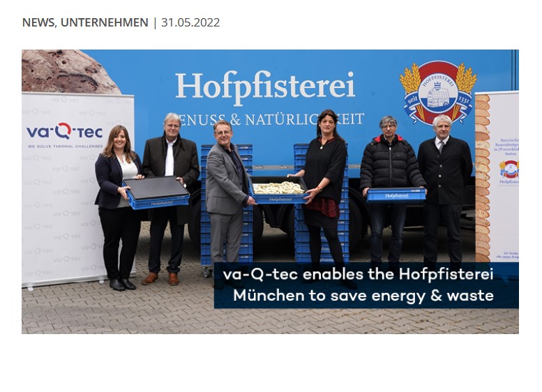 Das va-Q-tray 15, wie die Individuallösung für die Hofpfisterei München heißt, erweitert das Portfolio von va-Q-tec im Bereich Lebensmittellogistik. Mit dem -, dem va-Q-tray 25 und dem va-Q-trolley, einem Rollwagen, der hochisoliert ist und in den mehrere va-Q-trays gestapelt passen, kann va-Q-tec nun optimal auf verschiedenste Kundenanforderungen reagieren.