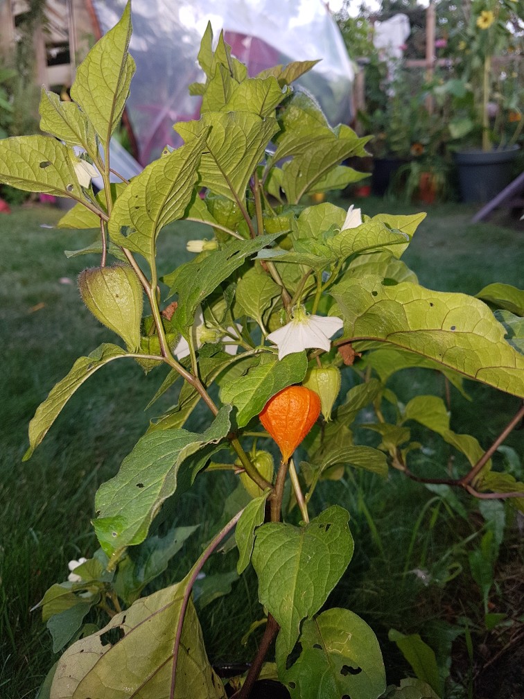 Die gesäte Lampionblume hat nun auch ihren ersten orangenen Lampion bekommen!