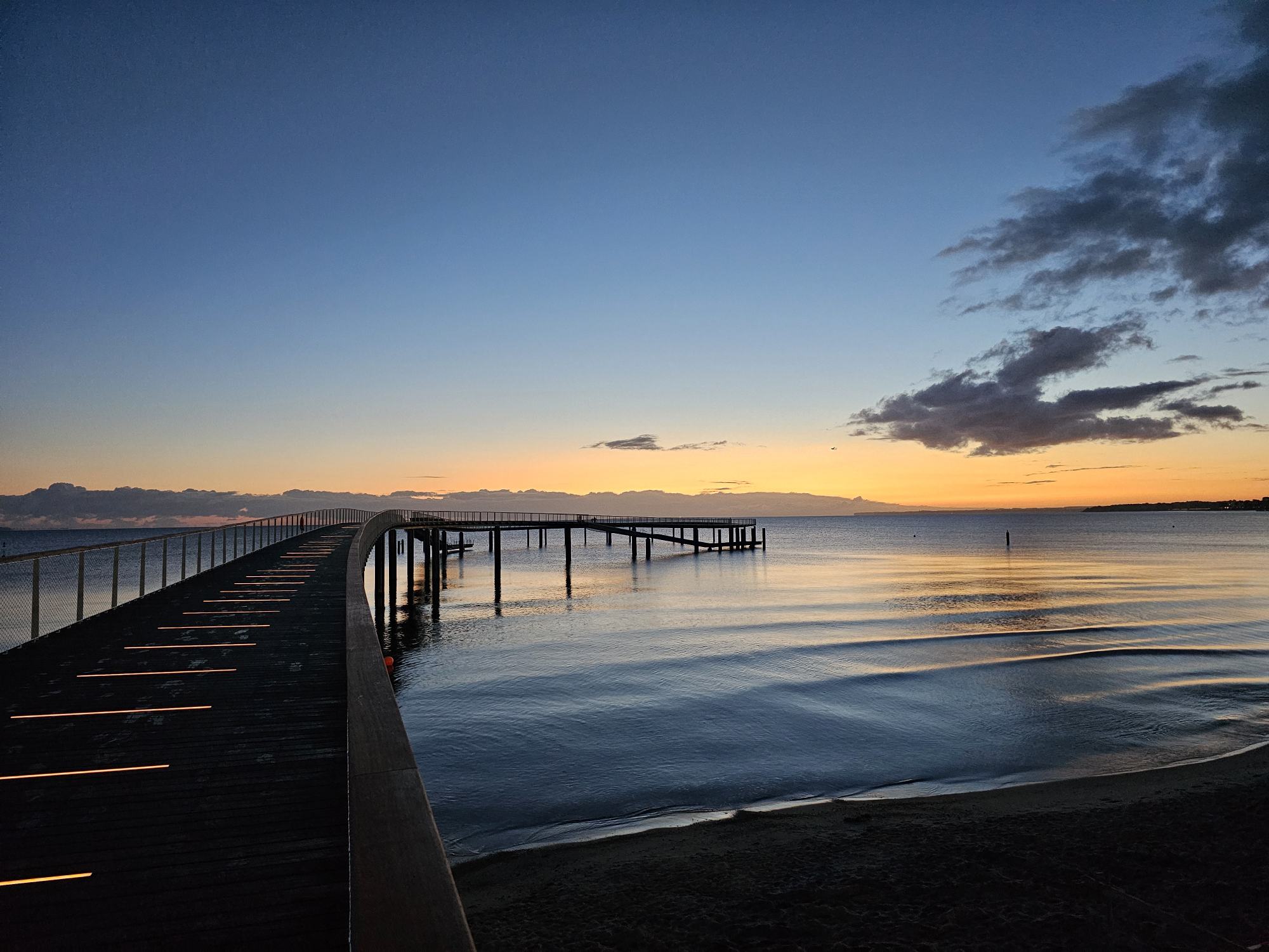 Na ja, werde ich heute mal langsam die Terrasse aufräumen. Das Gerüst is weg, der Dreck ist geblieben. Aber noch bin ich zu durchgefroren von heute Morgen. Wollte doch mal die neue Seebrücke ohne Leute betrachten. War ziemlich frisch bei 6 Grad. Ansonsten heute sehr schön und strahlender Herbstsonntag.