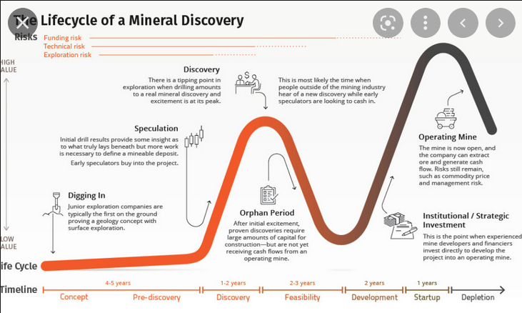 Diese allgemeine Kurve für den Aktienverlauf einer Entstehung eines Rohstoffproduzenten von der Entdeckung bis zur Produktion kenn ich schon lange, hab mich nur nicht daran gehalten ;-)