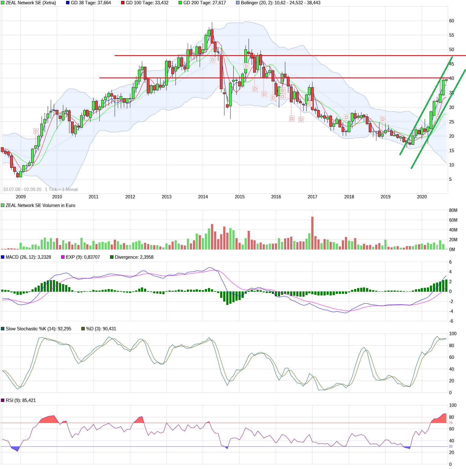 Eins muss, vielleicht der wichtigste Punkt, der free float ist mit 18% (wenn nicht noch niedriger) sehr gering. Und irgendwer kauft gezielt bei Kursen um die 40€ Papiere auf. Deshalb ganz ganz wichtig niemand verkauft unter 44 €, die 44 kommt...ganz sicher. Und das Online Lotto spielen ist die Zukunft.. und Zeal ist Marktführer und wird es bleiben.