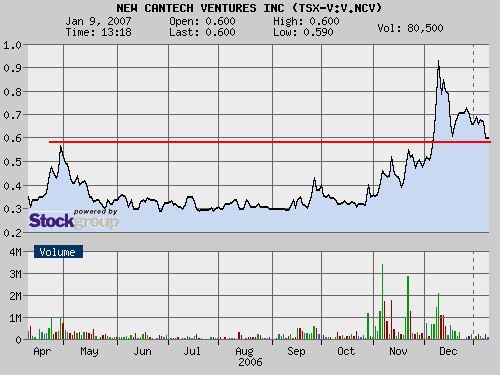 gehalten. Das darf nicht vergessen werden. Für die Rohstoffaktien waren die ersten Tage in 2007 ein "rotes Tuch". Trotzdem hat die Unterstützung gehalten. Sobald der Markt sich erholt dürfte New Cantech outperformen.