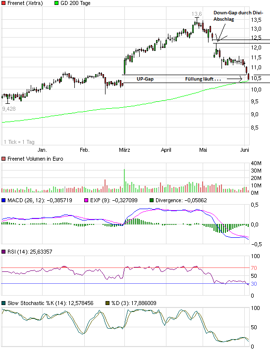 hat der gleiche Typ von GMT heute übrigens ausgerufen es geht mindestens weiter runter bis 6,18 Euro. Konnte es aber genauso wenig erläutern wie bei seinem gewürfelten KZ von Freenet. Vor wenigen Tage (10.5.) hat die gleiche Nase noch ausgerufen es geht hoch auf 15€ bei Drillisch. Also der Typ fällt hysterisch von einem Extrem ins andere weil er garnichts über die Aktien weiß über die er da seine Sülze absondert.( http://www.godmode-trader.de/nachricht/...der-Drillisch,a2826003.html Charttechnischer Ausblick: Die Aktie von Drillisch könnte nun zu einer weiteren Rallyphase ansetzen. Der nächste Zielbereich liegt bei 11,50/80. Später sollte der Wert in Richtung 15,00 Euro ansteigen....) Bei dem A. Paulus muß man ja froh sein, wenn der jetzt wenigstens bei seiner Kurzzielen nicht tiefere KZ würfelt als der Gewinn pro Aktie ist. Aber ich glaube selbst das würde der nicht merken.