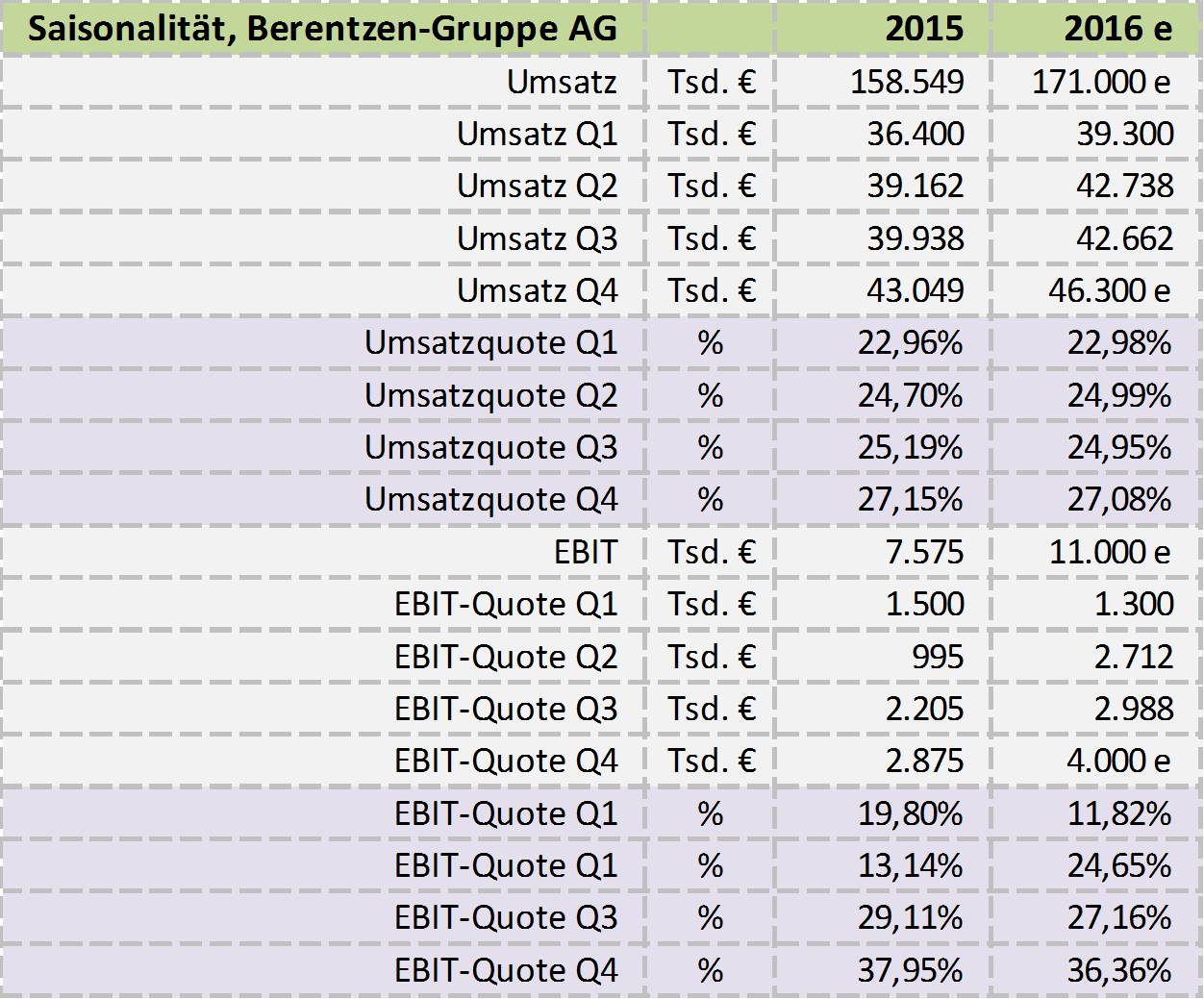 Berentzen, unterjährliche Entwicklung