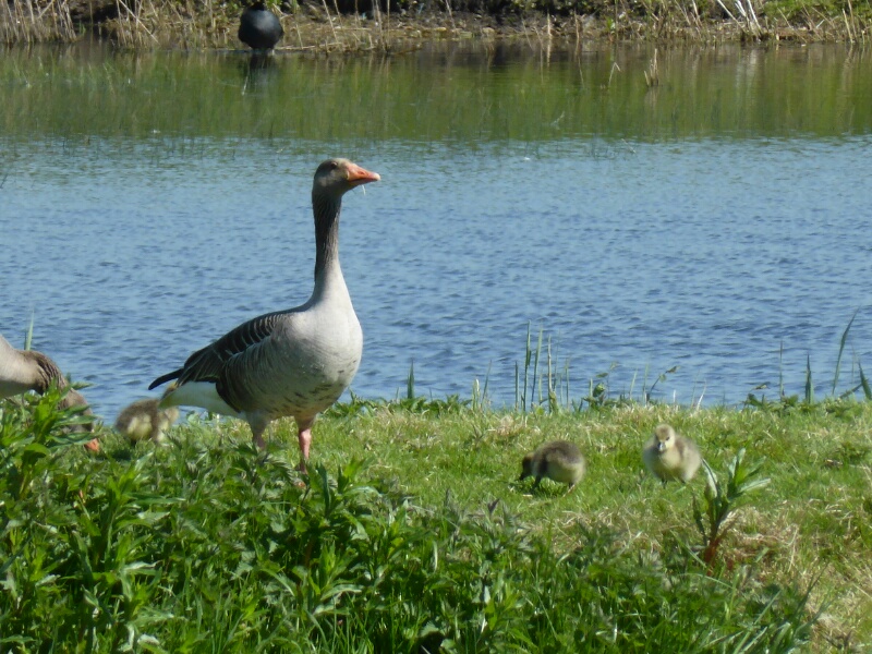 Die Graugans war auch am Schönungsteich mit ihrem Nachwuchs.