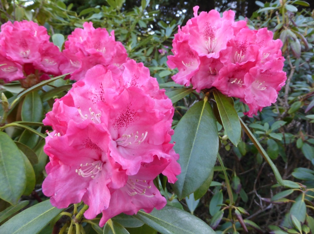 Und jetzt der knallrote Rhododendron mit guter Winterhärte von Hachmann vermutlich "Carolin Scholz" und ein Rhododendron in Violett "Azurro", Winterhärte bis minus 26 Grad, beide schon recht gross