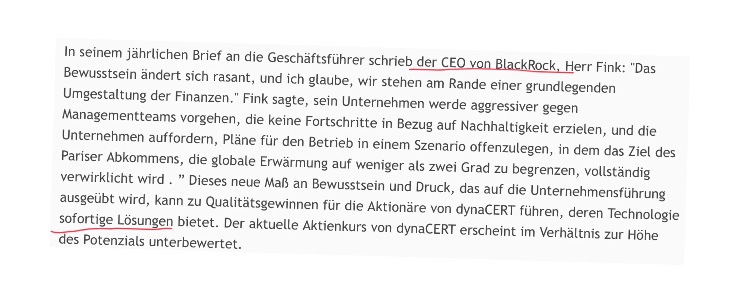 Und genau da ist der Punkt. DynaCert hat ein fertiges Produkt und ist sofort anwendbar.