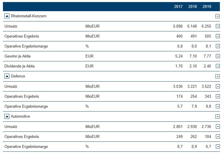 Dabei ist der Technologie-Konzern für die Krise gut gerüstet: Der Free Cashflow stieg im vergangenen Jahr auf 314 Mio. (2018: -35 Mio.) Euro und der Auftragsbestand übertraf mit 10,8 Mrd. Euro (+19,8%) erstmals die Marke von 10 Mrd. Euro. Anfang April vermeldeten die Düsseldorfer eine Bestellung von Artillerie-Munition für über 70 Mio. Euro. Als führender Ausrüster der Bundeswehr sieht sich das MDAX-Unternehmen außerdem in der Verantwortung, die Regierung im Kampf gegen das Coronavirus zu unterstützen