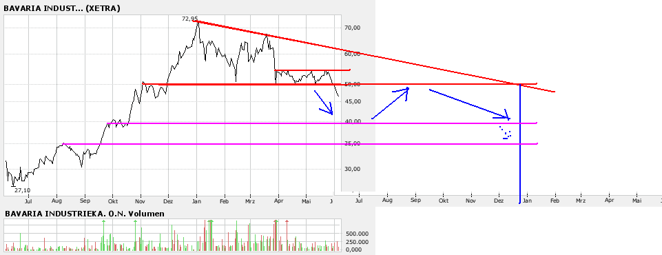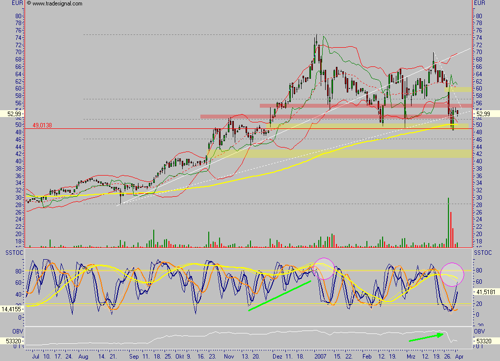 Bach dem Bruch der 50,00 EUR sieht es nicht gut aus. Nur wenn die 55 EUR wieder kommen kann man sich die Sache wieder anschauen !