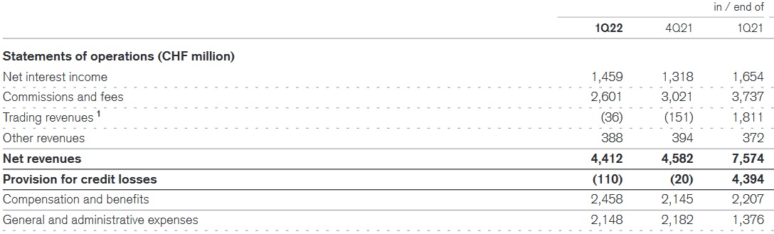 Credit Suisse für das Vorjahr einen Verlust von 1,65 Milliarden Franken ausgewiesen, der sich